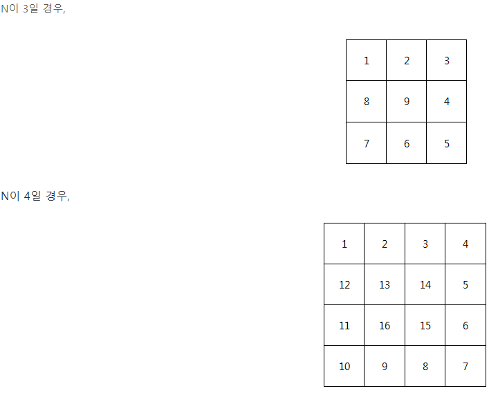 -> 달팽이의 크기 N은 1 이상 10 이하의 정수